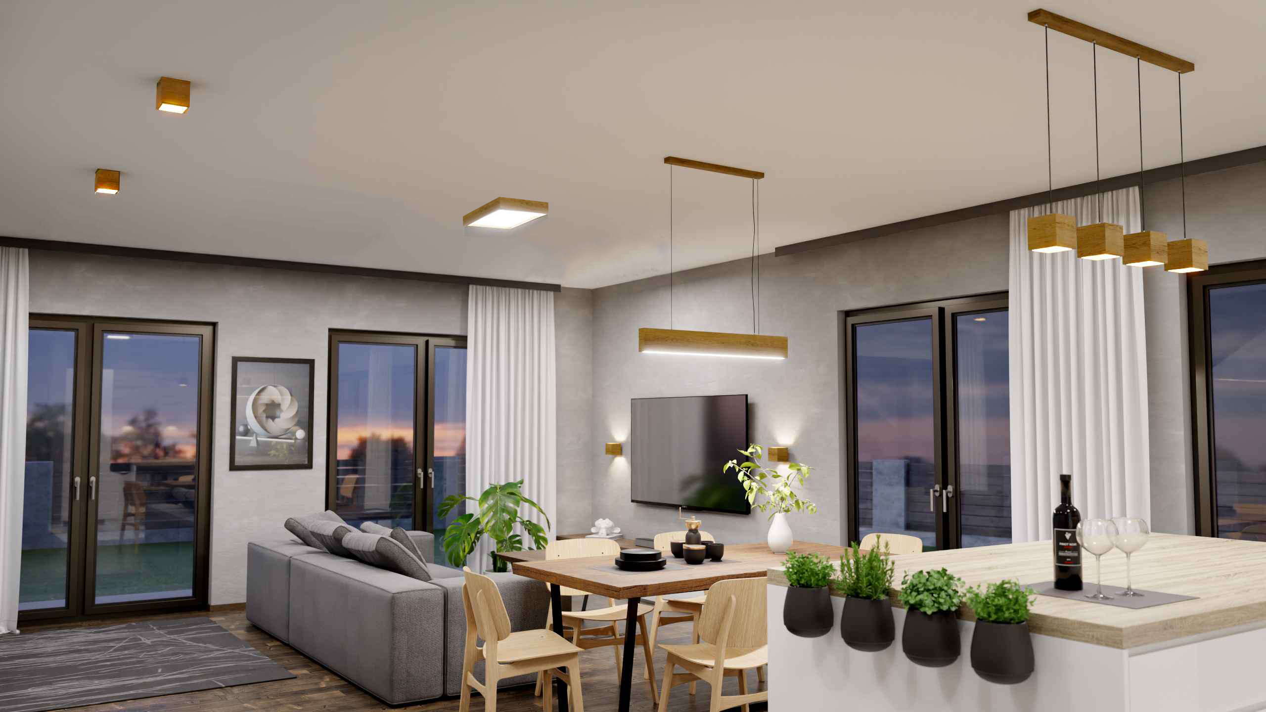 Taśmy LED wykorzystane w lampach emitują stały, równomierny strumień światła na całej powierzchni lampy bez widocznych punktów świetlnych.