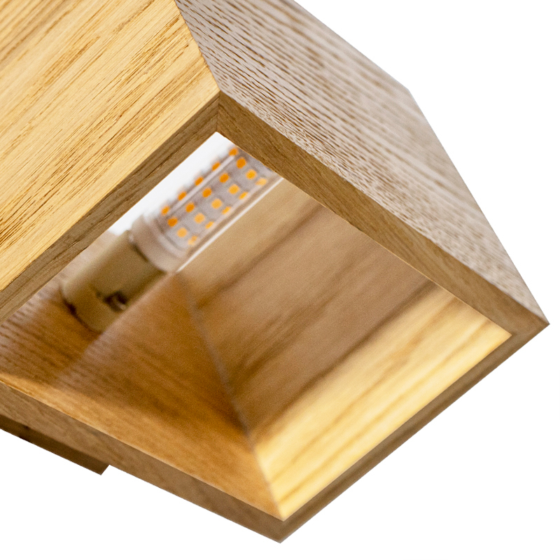 - Minimalistyczny kształt kinkietu sprawia, że jest atrakcyjnym elementem dekoracyjnym zarówno w salonach, sypialniach czy przedpokojach. Każdy lampa posiada unikalny rysunek słojów drewna, co nadaje jej niepowtarzalnego charakteru i ociepla każde wnętrze.