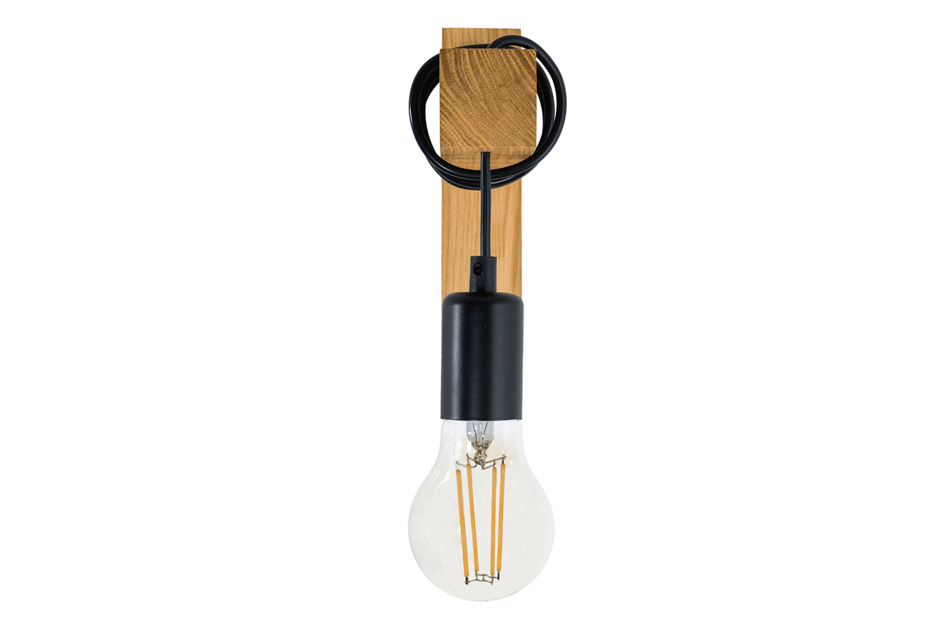 Materiał lamp to lite drewno dębowe, a nie tańszy zamiennik pomalowany na kolor dębu. Drewno jest zabezpieczone wysokiej jakości olejem aby podkreślić unikalny rysunek usłojenia.