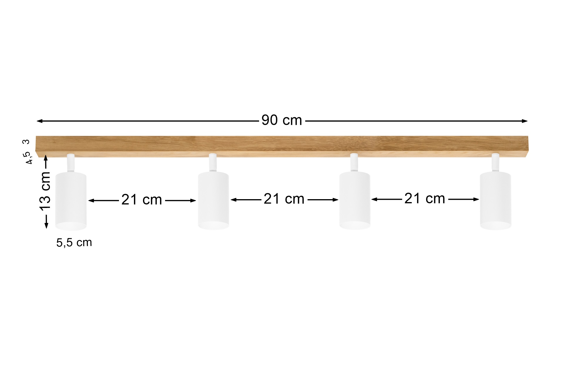 Kinkiet / Plafon MODERN Dębowy Biały 90 cm 4 x GU10